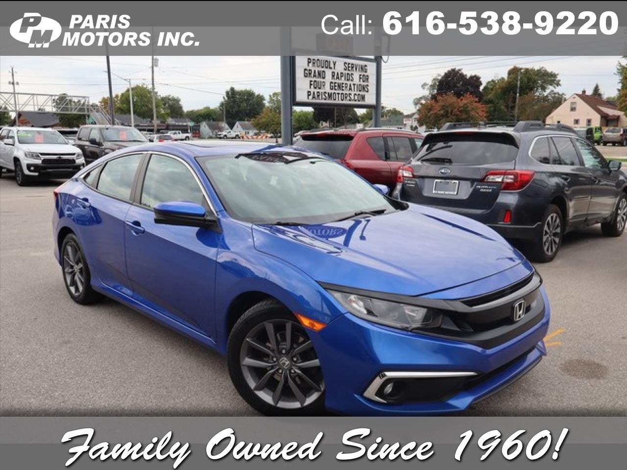 Paris Motors Inc. is pleased to be currently offering this 2020 Honda Civic Sedan EX with 151,710mi. For 60 years, our family-owned dealership has been treating customers honestly and with respect! Paris Motors is a past recipient of Michigan's Quality Dealer of the Year Award, selling preowned vehicles in the greater Grand Rapids area. View our entire inventory at www.parismotors.com or stop in & see us! Our hours of business are Monday-Thursday from 8am to 8pm, Friday from 8am to 6pm, and Saturday from 8am to 3pm- We look forward to serving YOU!! We accept VISA, Master Card, Discover, cash and personal check. Various options available for delivery - local and out of state. Call our TOLL FREE number for more INFORMATION or put a HOLD on the vehicle of your choice today with credit card deposit.