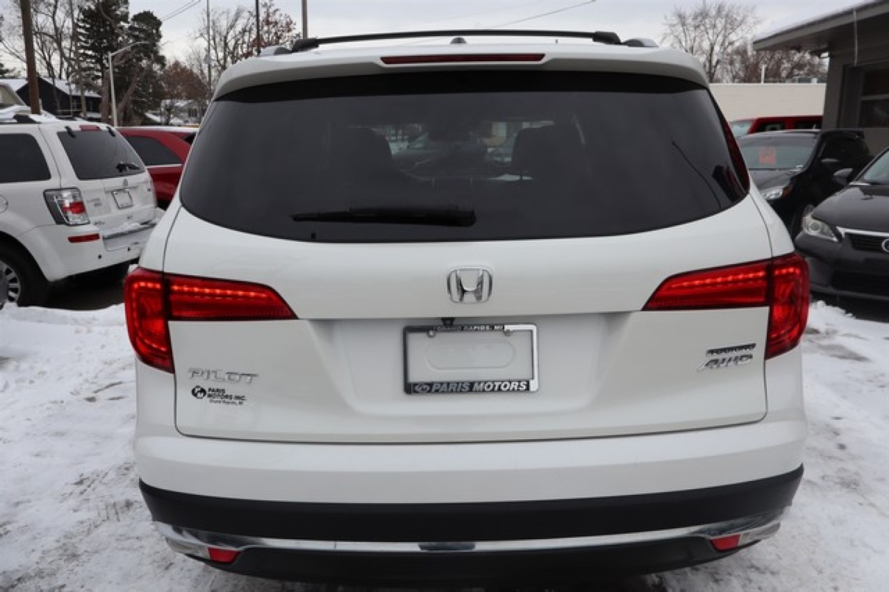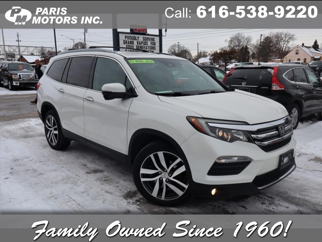 Check out this pre-owned 2016 Honda Pilot we recently got in. This Honda Pilot Touring has a tough exterior complemented by a well-designed interior that offers all the comforts you crave. Opulent refinements married with exceptional engineering make this the kind of car you'll want to own for a lifetime. This AWD-equipped vehicle handles well in any weather condition or terrain. You'll benefit from superb handling, improved steering and excellent acceleration. More information about the 2016 Honda Pilot: The redesigned Honda Pilot crossover utility vehicle is focused toward interior comfort and versatility. It features three rows of seating worthy of a minivan, yet it also incorporates the ruggedness of traditional SUVs. A host of new safety features is available for 2016 and it features a more powerful engine than last year and an available 9-speed transmission. Interesting features of this model are reconfigurable seating layout, three rows of seating, ride and handling, responsive powertrain, and Spacious interior For 60 years, our family-owned dealership has been treating customers honestly and with respect! Paris Motors is a past recipient of Michigan's Quality Dealer of the Year Award, selling preowned vehicles in the greater Grand Rapids area. View our entire inventory at www.parismotors.com or stop in & see us! Our hours of business are Monday-Thursday from 8am to 8pm, Friday from 8am to 6pm, and Saturday from 8am to 3pm- We look forward to serving YOU!! We accept VISA, Master Card, Discover, cash and personal check. Various options available for delivery - local and out of state. Call our TOLL FREE number for more INFORMATION or put a HOLD on the vehicle of your choice today with credit card deposit.