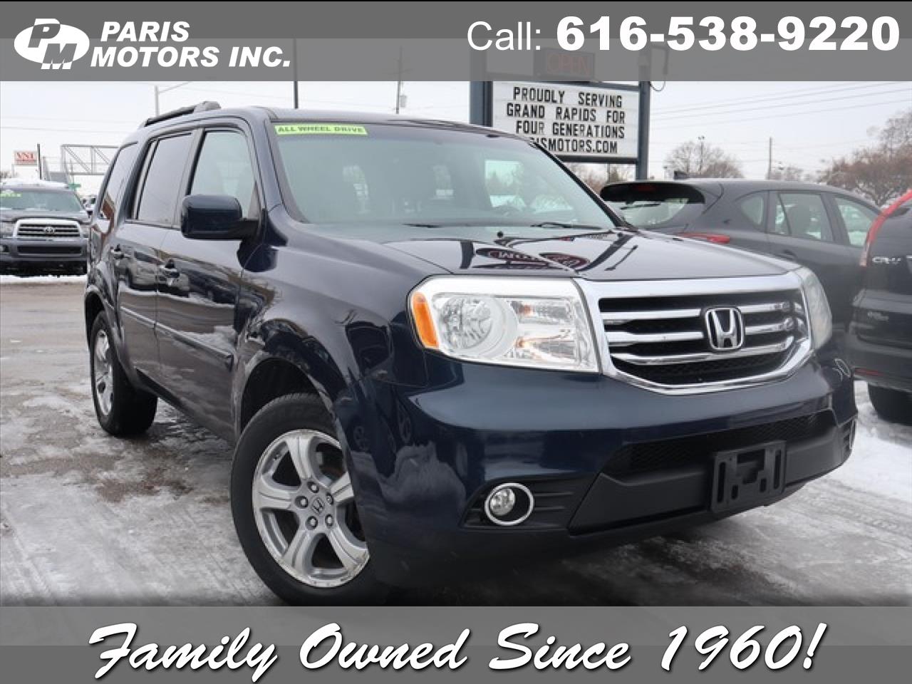 Contact Paris Motors Inc. today for information on dozens of vehicles like this 2012 Honda Pilot EX-L. The Pilot EX-L doesn't disappoint, and comes with all the quality and understated opulence buyers have come to expect from the respected Honda marque. A truly versatile SUV, this vehicle will please even the most discerning of buyers. Taking the road less traveled has never been more fun than with this 4WD. With improved performance, mileage and acceleration, this 2012 4WD Honda Pilot EX-L is king of the off-road. Marked by excellent quality and features with unmistakable refined leather interior that added value and class to the Honda Pilot EX-L. More information about the 2012 Honda Pilot: Honda is recognized for the quality of its design and engineering, and the 2012 Pilot is no exception. However, the true value and strength of the Honda Pilot is its roomy interior, which features seating for up to eight passengers. The Pilot's 87.0 cubic feet of cargo space make it great for hauling too. This model sets itself apart with three-row seating, excellent safety, competitive pricing, and Practical For 60 years, our family-owned dealership has been treating customers honestly and with respect! Paris Motors is a past recipient of Michigan's Quality Dealer of the Year Award, selling preowned vehicles in the greater Grand Rapids area. View our entire inventory at www.parismotors.com or stop in & see us! Our hours of business are Monday-Thursday from 8am to 8pm, Friday from 8am to 6pm, and Saturday from 8am to 3pm- We look forward to serving YOU!! We accept VISA, Master Card, Discover, cash and personal check. Various options available for delivery - local and out of state. Call our TOLL FREE number for more INFORMATION or put a HOLD on the vehicle of your choice today with credit card deposit.